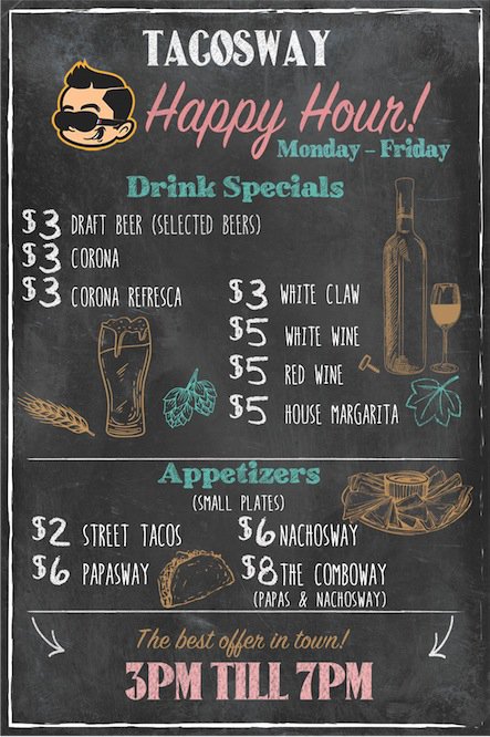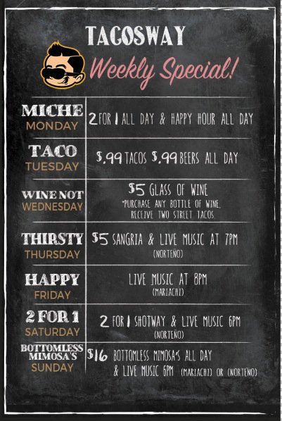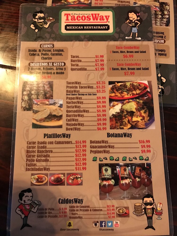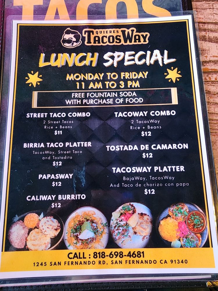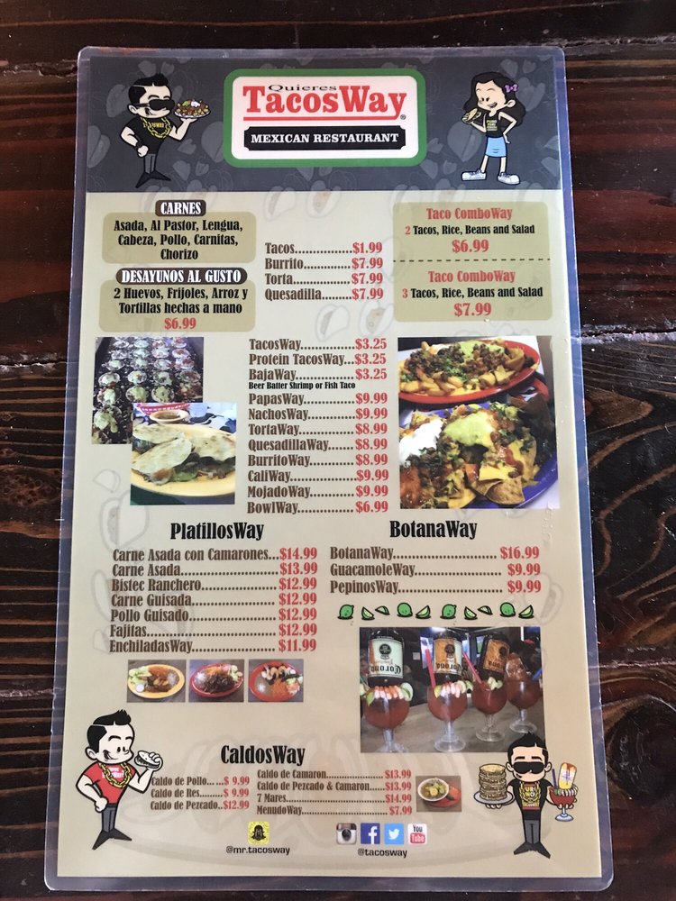 TacosWay, BajaWay, GringaWay, chorizo con papa. Menu favorites.